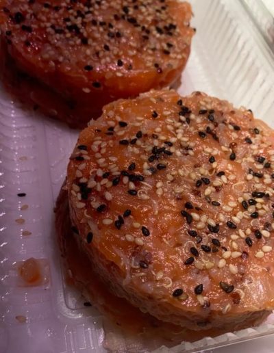 - Hamburguesas de Salmón, quinoa, Cebolla Confitada y Queso de Cabra.